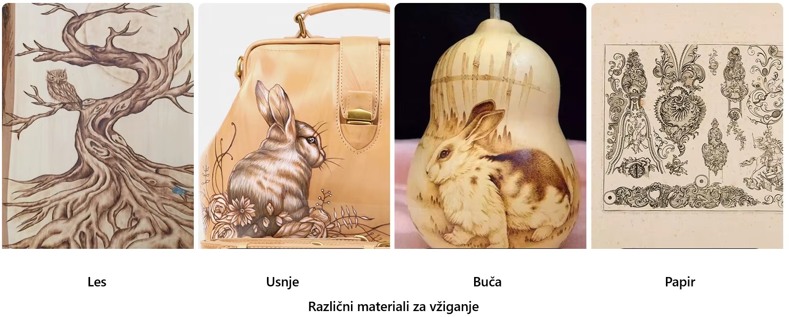 With a wood burning pyrograph you can decorate many items such as: wooden boards, toys, boxes, wooden kitchen tools, furniture, jewelry, ornaments, business cards. With a pyrograph you can draw, make portraits, process styrofoam and the like. Talented people can conjure real works of art with a pyrograph.
