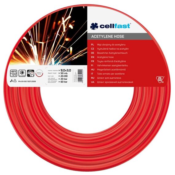 WĄŻ DO ACETYLENU 9,0X3,0mm 50m CELLFAST